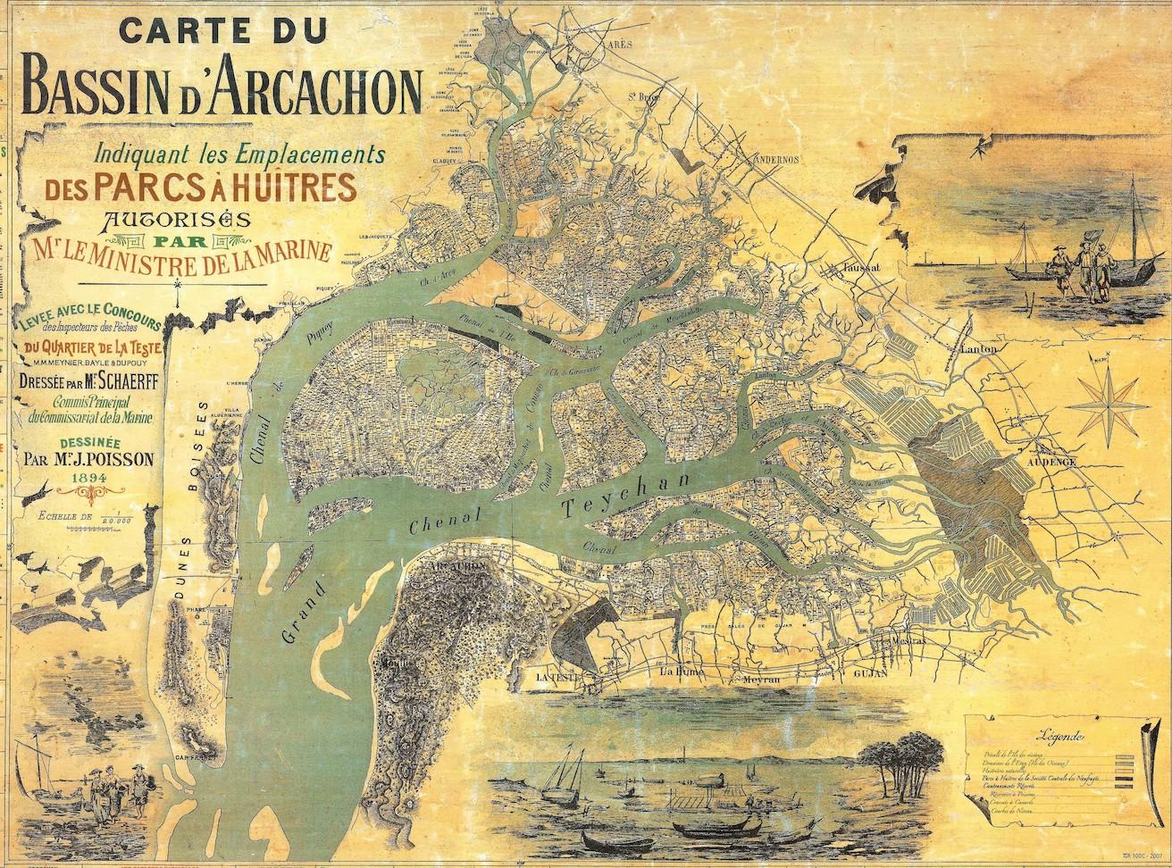 Les années 1860 sont marquées par l’épuisement des bancs naturels d’huîtres du bassin et le développement de l’ostréiculture. L’empereur Napoléon III encourage la création de parcs expérimentaux à Lahillon, au nord-est de l’île aux oiseaux. Les premiers ostréiculteurs sont des marins : il faut être inscrit maritime pour obtenir une concession. Les parqueurs édifient de sommaires cabanes sur le domaine maritime de l’ile.